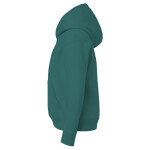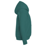 Soft cotton faced fabric. Brushed back fleece. Drop shoulder style. Double fabric hood. No drawcords to comply with EU regulations. Front pouch pocket. Ribbed cuffs and hem. Twin needle stitching. Tear out label.